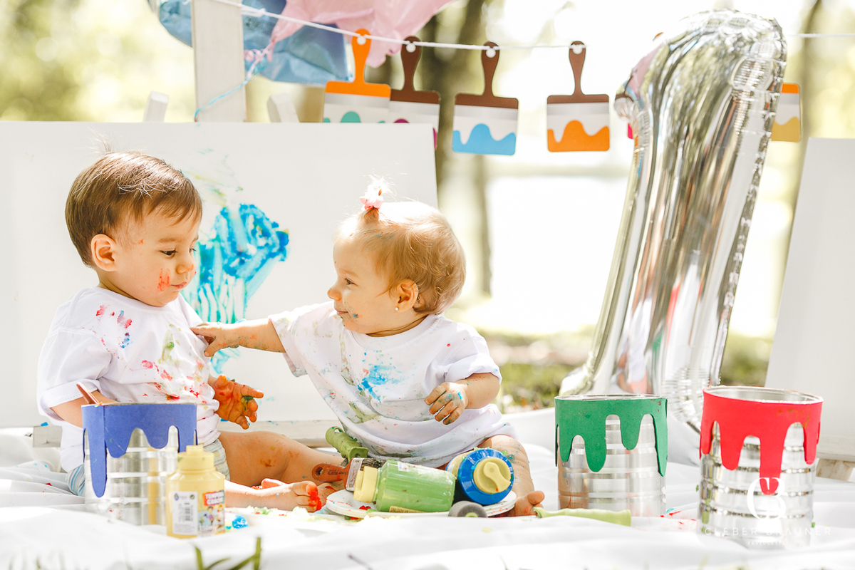A Camila é a super mãe do Leonardo e da Elisa. Ela teve a idéia de fazemos este lindo ensaio Smash the Paint para registrar o primeiro aninho destes lindos! Com ajuda do papai e da família, nossos momentos de ensaio foram maravilhosos e o registro ficou encantador!