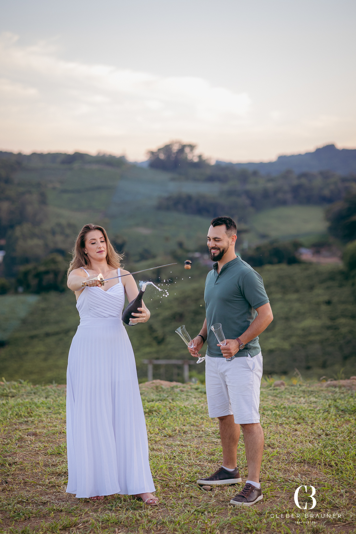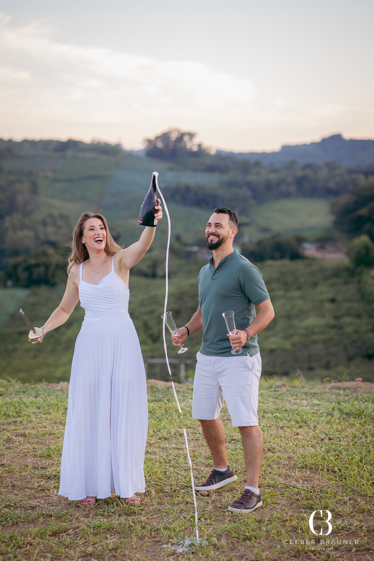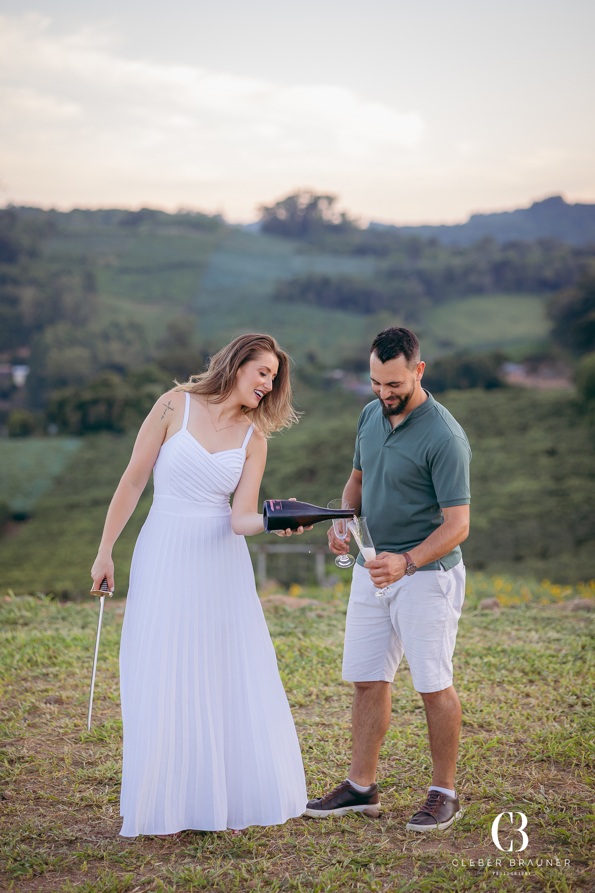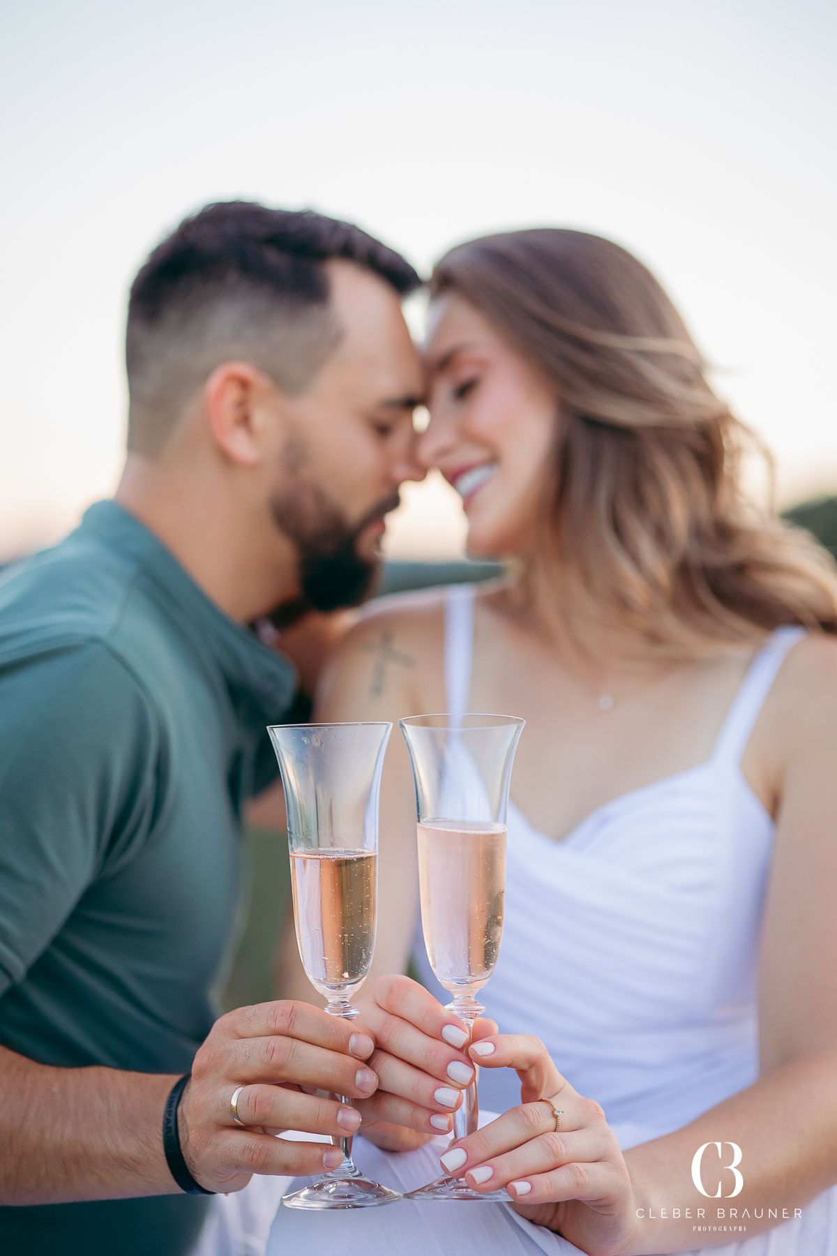 O ensaio aconteceu nos Vinhedos Martinelli, aqui na nossa Serra Gaúcha. A luz de fim de tarde desenhava as parreiras com suavidade, o vento passava leve entre as folhas e tudo parecia acontecer no tempo certo. Sem poses forçadas. Sem exageros. Só eles dois, sendo exatamente quem são.